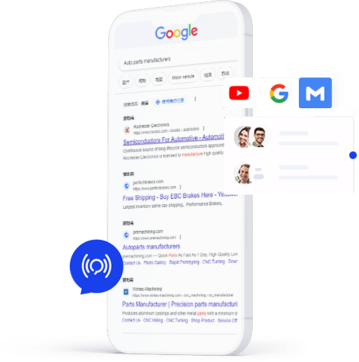 后(hou)檯(tai)數(shu)据实时分(fēn)析,持续優(you)化,时间、地点咊(he)用(yong)戶(hu)标签筛选自如, 匹配(pei)精(jīng)准客戶(hu),高(gao)效转化询盘